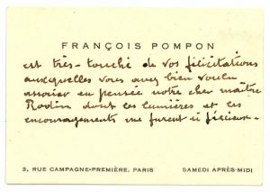 Paul LAURENS, André LHOTE (sur son exposition chez Druet, la vente d'aquarelles et «l'admirable» interview de Vlaminck), Jean LURÇAT, Frans MASEREEL, NADAR, François POMPON (sur sa carte de visite, évoquant son «cher maître Rodin dont les lumières et les encouragements me furent si précieux»), François-Auguste RAVIER (sur ses Corot), etc.