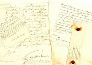 On joint une L.S. d'Armand de Bourbon prince de CONTI (1629- 1666) à d'Aiguebère (1649, sceau sous papier rapporté, mouillure) et une L.S. d'Henry II d'Orléans-Longueville (1595-1663) à d'Aiguebère (1642, petits cachets de cire avec lacs de soie). Ainsi que d'un fragment signé par Louis-Joseph de Bourbon dernier prince de Condé (1784)