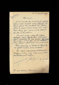 L.A.S. à «cher ami» [Gaston Gallimard]. Paris, 1er août 1947. 1 p. in-8. Légère mouillure sur un côté.