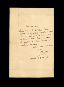Lettre inédite. «Je vous recommande Mr Léon Prat répétiteur au Lycée