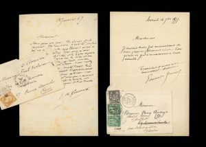 On joint: L.A.S. d'Edmond de Goncourt, à Henry Houssaye. Auteuil, 14 septembre 1877. ½ p. in-8. Enveloppe avec adresse autographe, timbres et marques postales conservées. Goncourt le remercie pour son «grand et charmant article» et voudrait recommencer leurs dîners ensemble.
