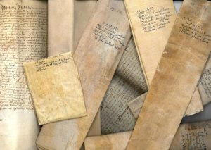 François Gollioux, bourgeois d'Evian (1559, grand parchemin avec 2 visages de profils esquissés), et une patente de l'évêque de Sion confirmant l'élection de Claude de Blonay comme abbé de Notre-