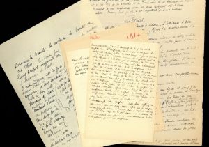 - Sur la souffrance. S.d. 1 p. in-8. «La souffrance est le moyen de conquérir Dieu [...]. La souffrance vient de notre attachement à la terre qui est démon [...]. Entrainons nous a bien souffrir. Mon Dieu affinez un peu mon coeur et mon corps afin que je souffre davantage et mieux. Donnez comme but à ma vie non le bien être et la foi mais au contraire l'acceptation des peines et des horreurs de la terre et la patience qui est une souffrance».