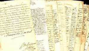 Requête au bailli de Chastel-sur-Moselle (1614). Décharge au sujet de la chapelle de Ferier (Nancy, 1682). Bail pour le comte de Ludres (1614). Pièce signée par les religieuses de la Maison de l'Adoration perpétuelle de Nancy (1748). Bail signé par Marie-Isabelle de Ludres (1711). Vente d'une maison au comte de Bourlement (signé par lui, 1667). Acquisition par Louis de Custine de Pontigny d'une métairie à Marcilly (1676) + autre document signé par Louis de Custine (1670).