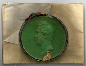 Pièce signée, contresignée par le Garde des sceaux, Persil. Parchemin, en partie imprimé, scellé par un très grand sceau en cire verte à l'effigie de Louis-Philippe, avec contre-sceau aux attributs de la monarchie de Juillet, conservé dans une boîte métallique. Palais des Tuileries, 21 janvier 1837.