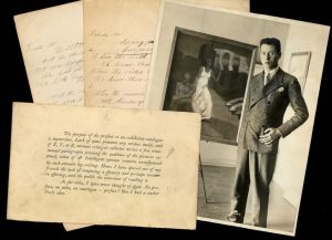 (25 x 20 cm) avec mention en anglais au dos, expliquant que pour son exposition à la Mary Sterner Galleries, chaque oeuvre aura 6 titres donnés par 6 de ses amis.