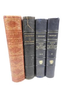 GRANDVILLE: Réunion de 4 vol. grand in-8 en demi-reliure d'époque (avec une coiffe arrachée, des rousseurs, défauts et une déchirre avec manque au ff. 111 pour "un Autre Monde): -Un autre monde, Fournier, sans date, planches en noir et dessins...