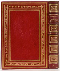 Histoire de Minoutchehr selon le Livre des Rois. Illustrées par Michel Simonidy. Paris, H. Piazza, (1919). In-8°. Relié par Canape : plein maroquin rouge, plats cernés de plusieurs cadres fleuronné ou à multiples filets dorés, dos à nerfs et...