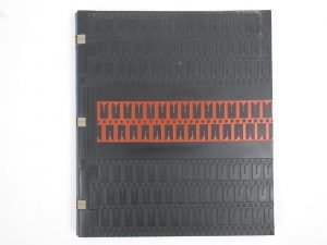 MUSIC: L'Œuvre graphique. MNAM, 1988. IN-4 reliure revorim de Jean de Gonet, dos bleu, plats de polyuréthane noir moulé avec motif central rouge. Nombreuses reproduction. Exemplaire enrichi d'un envoi de l'artiste. Belle reliure de Jean De Gonet.