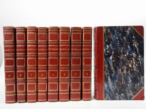 RABELAIS: Œuvres. Edition variorum, augmentée de pièces inédites, des songes drolatiques de Pantagruel…Dalibon, 1823. 9 vol. in-8 demi-maroquin rouge d'époque à petits coins, dos à nerfs orné, (qq petits défauts, rousseurs). Bonne...