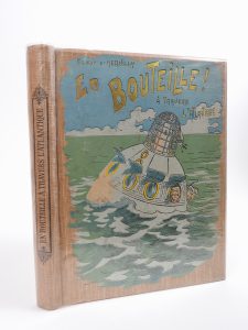 HERVILLY: En bouteille à travers l'Atlantique. Furne et Cie, sans date. In-8 toile éditeur, premier plat orné d'une composition en couleurs personnalisée, tranches dorées. Ouvrage illustré de 45 gravures. Bel exemplaire.