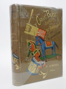 POUVILLON (E.): Le cheval bleu, contes pour les adolescents. Lemerre, sans date. In-8 toile éditeur, premier plat orné d'une composition en couleurs personnalisée, tranches dorées. Illustrations de Pille et Myrbach. Bel ex.