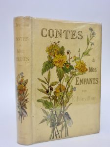 POUVILLON (E.): Contes à mes enfants. Lemerre, sans date. In-8 toile éditeur, premier plat orné d'une composition en couleurs personnalisée, tranches dorées. Illustrations de Pille, Bouisset, Marre et Myrbach. Légères rousseurs, coins frottés.