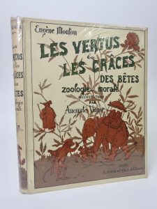 MOUTON (E.): Les vertus et les graces des bêtes. Zoologie morale. Mame et Fils, 1895. Grand in-8 toile éditeur, premier plat orné d'un décor personnalisé en couleurs, tranches dorées (légères rousseurs). Illustrations de Vimar.