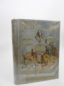 LA FONTAINE (J. de): Fables. Mame et Fils, sans date. Grand in-8 toile éditeur, premier plat orné d'un décor personnalisé en couleurs, tranches dorées. Illustrations de Vimar.