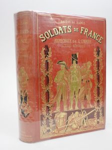 RAIMES (Gaston de): Soldats de France; Maréchaux de l'Empire. Lemerre, sans date. Grand in-8 toile éditeur, premier plat orné d'un décor personnalisé or et noir, tranches dorées.Illustrations de Henri Pille. Bel exemplaire.