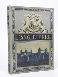 MOUSSAC (E. de): L'Angleterre. Tours, Mame et Cie, sans date. Grand in-8 toile éditeur, 1er plat orné d'une composition personnalisée, tranches dorées.(coins frottés, lég. Rouss.). Nombreuses illustrations.