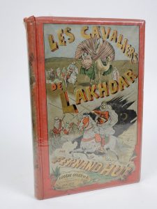 HUE (F.): Les cavaliers de l'Akhdar. Oudin et Cie, 1892. Grand in-8 toile éditeur, 1er plat orné d'une composition personnalisée en couleurs, tranches dorées. (toile un peu passé, coiffes et coins frottés) Illustrations de Gil Baer.