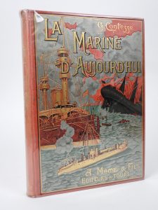 CONTESSE (G.): La Marine d'Aujourd'hui. Tours, Mame et Fils, 1899. Grand in-8 toile éditeur, premier plat orné d'un décor personnalisé or et noir, tranches dorées. (légères rousseurs). Ouvrage orné de 150 gravures.