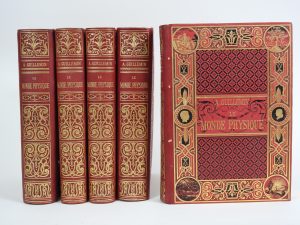 GUILLEMIN (A.): Le Monde Physique. Hachette et Cie, 1881. 5 vol. Grand in-8 demi-chagrin rouge éditeur, plats richement ornés, tranches dorées. Nombreuses illustrations. Bel exemplaire conservé dans sa riche reliure éditeur (qq légères rousseurs)