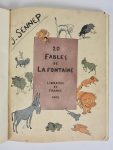 SENNEP: Vingt fables de La Fontaine. Librairie de France, 1927. In-4 plein vélin, grand dessin original peint sur le premier plat, étui. Les Fables de La Fontaine interprétées par Sennep. 1/960 vélin avec une superbe reliure peinte. Couv. Cons.