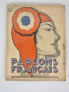 IRIBE (Paul): Parlons français. Floury, 1934. In-4 broché, couverture illustrée. Préface de CONSTANTI-WEYER. 37 dessins en couleurs de Paul IRIBE dont 16 H.T et 15 à double page.