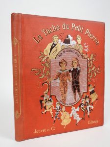 BIGOT (Ch.): la tâche du petit Pierre. Jouvet et Cie, sans date. Grand in-8 toile rouge éditeur, premier plat orné d'une composition personnalisée or, noir et argent, tranches dorées (légères rousseurs). Illustré de 46 gravures sur bois par...