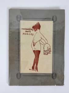 Margaritas Ante Porcos: Poèmes au nombre de soixante-neuf pour la délectation des facétieux paillards…Paris, 1920. In-12 broché. Un frontispice reprenant l'illustration de la couverture. Ouvrage entièrement hors commerce tiré à 100...