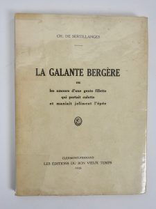SERTILLANGES (Ch. De): La Galante bergère ou les amours d'une gente fillette qui portait culotte et maniait joliment l'épée. Clermont-Ferrand, Editions du Bon Vieux Temps, 1926. In-12 broché, non coupé. Edition illustrée de gravures libres hors...