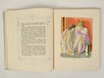 OVIDE: L'Art d'Aimer. Chamonix, Jean Landru, 1946. In-4 en ff. sous chemise et emb. (dos de l'étui passé). Edition illustrée de compositions en couleurs d'Uzelac. Tirage à 999 ex., celui-ci hors commerce enrichi d'une suite libre de 10 dessins en...