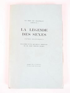 HARAUCOURT (E.): La Légende des sexes. Poëmes hystériques.Imprimé sous le manteau et ne se vend nulle part. (vers 1930) In-8 broché (dos passé). Frontispice tiré sur papier du Japon gravé aquarellé à la main par l'artiste (chaque...