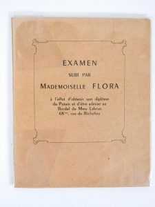 [PROTAT Louis] Examen subi par Mademoiselle Flora à l'effet d'obtenir son diplîome de Putain…S.n.s.d. (vers 1930) plaquette in-12 brochée, 27 pages. Edition clandestine peu commune. A la fin on lit sur le dernier feuillet imprimé : Il a été...