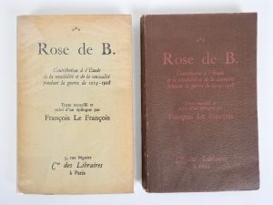 Rose de B. contribution à l'étude de la sensibilité et de la sensualité pendant la guerre de 1914-1918. Compagnie des Libraires, 1938. Un vol. in-12 broché, non coupé, couverture marron imprimée. Edition originale. On joint un autre exemplaire...
