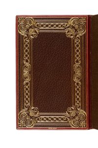 témoins, doublure de maroquin brun orné d’un large décor d’encadrement doré, gardes de moire brune, doubles gardes, couvertures conservées, étuis (Marius Magnin).