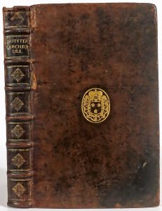 6)]-504-[4]-[9-1 bl.] pp.; 66 (sur 73) h.-t. (manquent le titre typographique et 7 planches : carte du diocèse d'Anvers, vues des châteaux d'Argenteau, Schilde, Broechem, Cleydael, d'Hovorst et Moninchoven (ces derniers manquent très souvent), qqs pp. ou pl. brunies, pet. taches passim, qqs déch. aux plis des pl. dont certaines restaurées). Rel. armoriée de l'époque : plein veau, dos fleuronné doré à nerfs, tr. jaspées (faibles us. aux coins, mors fendus avec petit manque, coiffe sup. part. manquante). Une des deux éditions parues à la même date mais chez des éditeurs différents (Lamming ou Magnus) de cette description chorographique du marquisat d'Anvers et de ses dépendances (Ryen, Zandhoven, Herentals, Geel, Hoogstraten, Turnhout, Breda...). Abondante illustration composée de : 1 titre gravé figurant les armoiries du marquisat d'Anvers avec 2 figures allégoriques représentant la Paix et la Guerre, 66 hors texte sur simples pages ou à déplier et 138 in texto (cartes, plans de villes, vues de châteaux ou de lieux de plaisance, monuments funéraires), 10 pleines pages figurant exclusivement des armoiries ou des stèles, des épitaphes ou des sépultures et 1 bandeau allégorique à la dédicace avec les armoiries de Charles II. Enrichi de : (1). la planche figurant le château de "Boulaer" (reliée p. 95; sujet non mentionné par la BB).— (2). l'index des noms de familles, monastères, armoiries & sceaux publiés par Pierre Grangé en 1715. # BB III-831/838; # pas dans Funck. Provenance : Charles-Marie-Raymond, duc d'Arenberg (1721-1778), chevalier de la Toison d'Or, Grand'croix de l'Ordre militaire de Marie-Thérèse, gouverneur de Mons et grand bailli du Hainaut (supra-libros; # de Jonghe d'Ardoye 640).