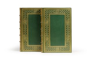 DAUDET (Alphonse). — Fromot jeune et Risler aîné. — Mœurs parisiennes. — Paris, Librairie L. Conquet, 1885. — 2 volumes in-8°, maroquin vert, large décor doré à semis de fleurons encadrant les plats, dos à nerfs orné, tranches...