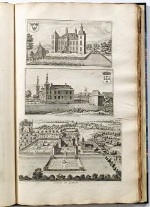 gebruind spoor van bladwijzer in een 5-tal marges). Moderne blauwe halve marokijnband met hoeken : gladde rug met goudgestempelde titel (onafgesneden). Eerste uitgave van de Nederlandstalige versie van "Le grand Théâtre profane", eveneens uitgegeven in 1730 en op zijn beurt een compilatie van de "Castella & Praetoria Nobilium Brabantiae" (1699) en "Brabantia illustrata" (1705), hier evenwel met weglating van de beschrijving van Waals-Brabant en deze van de wapenschilden der Pepiniden. Evenals bij de Franse vertaling zijn de hoofdstukken en prenten betreffende het kerkelijke Brabant niet weerhouden bij de voorliggende uitgave. De iconografie is identiek aan de Franse uitgave en bevat 3 platen met de wapenschilden der Brabantse steden, 1 met de legende der heraldische kleuren, 1 met zegelringen en 67 platen met 188 gegraveerde afbeeldingen. Tot deze laatste behoren niet alleen de stadsplattegronden, panorama's en enkele openbare gebouwen van Leuven, Brussel, Antwerpen en 's Hertogenbosch, maar vooral de zichten van meer dan 150 kastelen en lusthoven uit de 4 Brabantse kwartieren. # BB III-857/858. Édition originale de la traduction du "Grand Théâtre profane" parue également en 1730 et illustrée des mêmes cuivres : 3 planches d'armoiries de villes brabangonnes, 1 planche héraldique et 1 de sigillographie ainsi que 67 planches avec 188 sujets figurant des plans et perspectives de villes et des vues de châteaux (qqs ff. lég. brunis). Demi-maroquin moderne (non rogné).