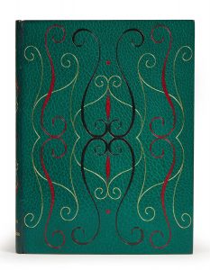 GUITRY (Sacha). — Le Roman d’un tricheur. — Paris, Éditions Georges Guillot, s. d. [1953]. — Grand in-4°, maroquin vert, plats entièrement ornés d’un décor d’arabesques dorées et mosaïquées polychromes, tranches dorées, doublure...