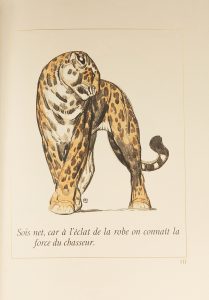 Illustrations et ornementations en couleurs rehaussées d’or par Paul JOUVE, gravées sur bois par Camille BELTRAND, en collaboration avec Pierre BOUCHET ; filet doré encadrant chaque page.