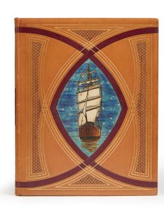 LOTI (Pierre). — Pêcheur d’Islande. — Préface par Louis Barthou. — Paris, Aux dépens d’un amateur, 1934. — In-4°, cuir de Russie blond, premier plat entièrement orné d’un décor doré, à froid et mosaïqué avec large motif...