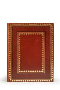 tranches dorées, doublure et gardes de moire rouge, couverture ornée conservée et étui (Lagadec).