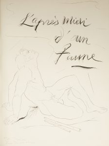 MALLARMÉ (Stéphane). — L’Après-midi d’un faune. — Paris, 1948. — In-folio, maroquin bordeaux janséniste, dos lisse, titre en long, doublure et gardes de moire verte, couverture conservée, chemise en demi-maroquin bordeaux à petits...