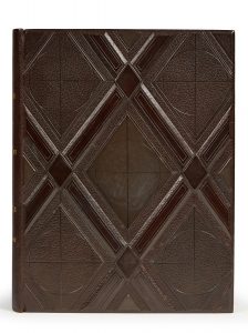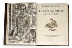RONSARD (Pierre de). — Discours des misères de ce temps. — Paris, Le Fuseau chargé de laine, 1930. — In-4°, maroquin brun, plats entièrement ornés d’un décor de larges croisillons en relief et filets à froid, dos lisse, tranches...