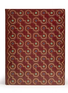 SCHWOB (Marcel). — Mimes. — S. l. [Paris], Les Bibliophiles de l’Automobile-Club de France, n. d. [1933]. — Grand in-4°, maroquin bordeaux, plats et dos entièrement ornés d’un décor de cercles dorés et mosaïqués polychromes, tranches...