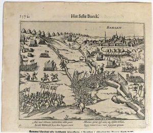 (Hainaut, Carto-topographie) - Ens. de 5 pièces - 5 pièces : 1 vue de Mons (Merian), 1 plan et 2 vues de Tournai (Guicciardin, Meisner de "Sciographia cosmica" et Merian) et 1 planche d'histoire (Mons), 17e siècle. Gravures sur cuivre, de 10 x 15...