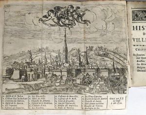 restaurée au coin inf. de la p. [15], plis à qqs coins, qqs salissures marg.). Rel. de l'époque : pleine basane mouchetée, dos fleuronné doré à nerfs, tr. jaspées de rouge (frottée, mors part. fendus, coiffes manquantes, pet. griffes, coupes et coins fort émoussés). Édition originale de cette historique par l'historien et juriste montois de Boussu (1681-1755). Complet du plan de la ville dépliant. # Rousselle 650. Provenance :marquis Frangois Bonaventure de Gages (Mons 1739-1787 Bachant), figure magonnique marquante des Pays-Bas autrichiens (ex- libris).