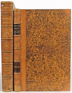 Continuation [...]]. Liège, Jean-Philippe Gramme [- veuve S. Bourguignon], 1720 [- 1788]. 2 vol. in-f°; 2 h.-t. (texte n.c., qqs pp. lég. jaunies ou brunies, pet. rouss.). Rel. du 19e s. : demi-veau glacé à petits coins, plats de papier marbré serti d'un double filet à froid, dos fleuronnés dorés à nerfs, t. dorées (dos et mors sup. -part. fendu-du vol. I lég. passés, coupes et coins émoussés au vol. I, pet. taches au vol. Ii, pet. étiq. aux contreplats sup., gardes renouvelées). Édition originale de cet ouvrage fort recherché du généalogiste Abry (1643-1720) édité par le jurisconsulte J.-G. Loyens, comprenant également une chronique de 1200 à 1720. Suivi de sa "Continuation" par J.-C. Ophoven "Procureur-Général et Syndic" (cfr titre vol. II). Illustré de nombreux bois in texto figurant des armoiries et blasons, de 4 pleines pages et de 2 hors-texte (dont une carte de "l'assise des bures des Mahais de la cité"). Comme dans la plupart des exemplaires, la rare gravure dépliante du Monument du tzar Pierre I. par S. Xhrouet manque. # de Theux 475 & 681; # de Ghellinck 1026 & 1027; # de le Court 812. Provenance : de Bérault (ex-libris armorié); T. de Valenzi (id.).