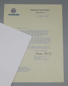 15 lettres adressées à Moïse Kisling en remerciement de ses dons de tableaux et dessins à certaines oeuvres caritatives : Herman Shumling (Anti-Fascist Refugee Committee), Victor A. Sax (United Jewish Appeal), L. Lévy (Aide aux Aveugles Israéliens), Julian Street Jr du Treasury Department (War Finance Campaign), R. Job (uvre de Secours aux Enfants), Guy de Rothschild (Fonds Social Juif Unifié), Louise Emile Fabre (Orphelinat des Arts), Milton Wolff (Action Committee to Free Spain), Pierre-André Weill (France Forever), Maurice Guy-Loë (Entr'aide des Artistes), Renée Engelstein (sur le résultat d'une vente aux enchères d'une toile pour les enfants déshérités d'Israël), Michelle V. Auriol (Appel des Nations-Unies en Faveur de l'Enfance). Simon Maurice Petsche (Village de l'Espérance), Edward Saher (Red Cross 1945 War Fund). Bel et émouvant ensemble.