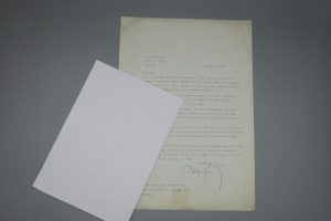 Le peintre annonce qu'il a déposé le tableau "Deux personnages" à la galerie Il Milione, à Milan. Puis il rappelle à son éditeur les conditions de leurs contrats, pour la part des oeuvres éditées qui lui revient. En PS, il dresse la liste des ektachromes dont il souhaite le retour. Belle signature.