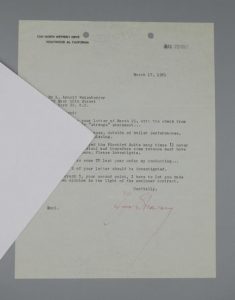 STRAVINSKY, Igor. L.D.S. à l'agent Arnold Weissberger. Hollywood, 20 mars 1961. 1 p. in-4. En anglais. Adresse imprimée en tête. Trous de classeur.